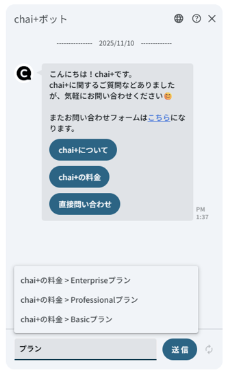 チャットへの質問入力時に、入力したキーワードに該当するシナリオをサジェスト表示する機能を追加いたしました。