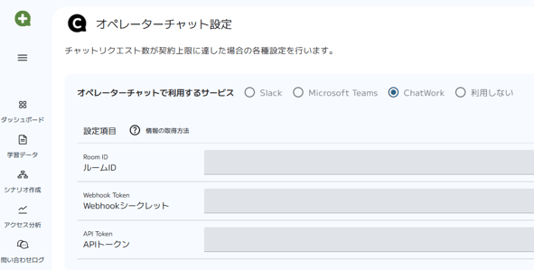 ・オペレーターチャット設定に「ChatWork」を追加しました。