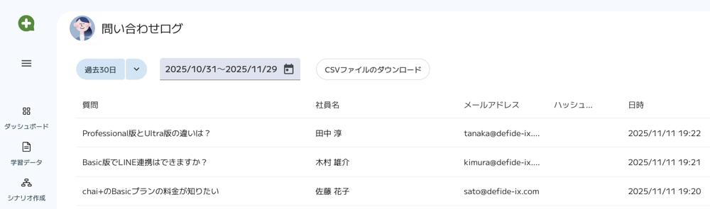 お問い合わせログにおいて、お問い合わせを行った社員の情報を確認できる機能を新たに追加いたしました。