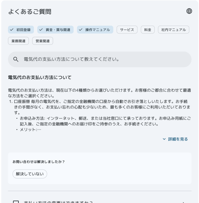 業務内容や運用方針に合わせたFAQ設計が行えるようになりましたので、より自社に適した回答体験の実現に、ぜひお試しください。
